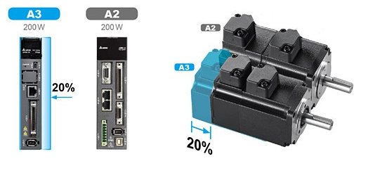 驅(qū)動(dòng)器面寬與馬達(dá)長(zhǎng)度縮小約 20% (與 A2 相比)
