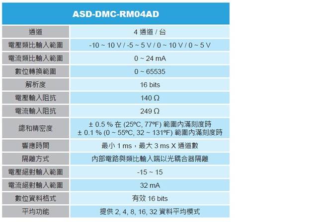 DMCNET 4 通道模擬輸入模塊 - ASD-DMC-RM04AD