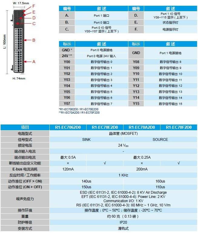 EtherCAT 16 通道數(shù)字輸出擴(kuò)展模塊 - R1-EC7062D0